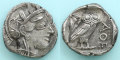 フクロウは、知恵と戦術の女神 アテナの聖鳥。コインに刻まれたフクロウは「コキンメフクロウ」と呼ばれる種類であり、学名では「Athene noctua」と表記される。